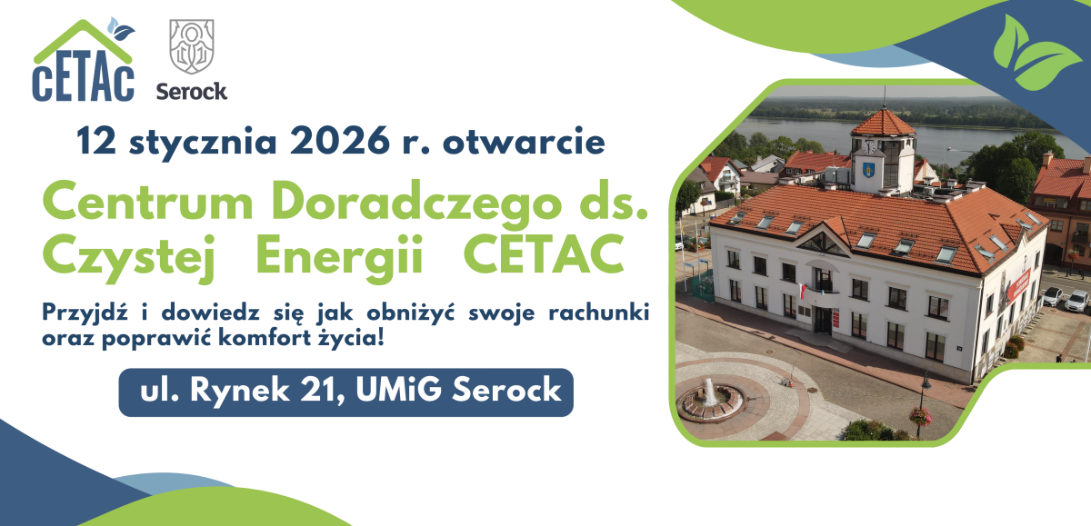 1 grudnia 2025 r. w Urzędzie Miasta i Gminy w Serocku odbyło się spotkanie rozpoczynające działalność lokalnego Centrum Doradczego ds. Czystej Energii (CETAC). W wydarzeniu uczestniczyli radni, sołtysi oraz pracownicy urzędu, którzy poznali zakres usług nowo powstającego punktu, planowane inicjatywy edukacyjne oraz sposób jego funkcjonowania. [middle1] Spotkanie otworzył Burmistrz Serocka, Artur Borkowski, podkreślając, że utworzenie centrum CETAC to ważny krok w stronę wspierania mieszkańców w oszczędzaniu energii, podnoszeniu efektywności energetycznej oraz pozyskiwaniu środków na inwestycje przyjazne środowisku. Podczas wydarzenia zaprezentowano szerokie możliwości, jakie niesie ze sobą projekt CETAC. Omówiono główne założenia inicjatywy oraz zakres planowanych usług, które wkrótce będą dostępne w serockim urzędzie — od indywidualnych porad dotyczących dotacji i pomocy przy składaniu wniosków, po specjalistyczne wsparcie dla firm, działania edukacyjne oraz mobilne akcje informacyjne. W spotkaniu wzięli udział także przedstawiciele Stowarzyszenia Gmin Polska Sieć „Energie Cités”, będącego partnerem technicznym projektu. Przekazali oni wiedzę oraz praktyczne wskazówki dotyczące redukcji kosztów energii, wody i ogrzewania, a także przedstawili możliwe ścieżki pozyskiwania dofinansowań. Uroczyste otwarcie centrum CETAC w Serocku zaplanowano na 12 stycznia 2026 r. Od tego dnia mieszkańcy będą mogli, w wyznaczonych godzinach, odwiedzać punkt w Urzędzie Miasta i Gminy, aby skorzystać z pierwszych konsultacji i pełnego wsparcia doradczego. Projekt CETAC finansowany jest z programu LIFE+ i będzie realizowany w latach 2024–2027. Ma charakter międzynarodowy i powstaje we współpracy z partnerami z Czech, Litwy, Łotwy, Niemiec, Rumunii oraz Ukrainy. Serock, jako pierwsza gmina w Polsce uczestnicząca w pilotażu, opracowuje model działania punktów doradczych, który w przyszłości może zostać wdrożony także w innych samorządach. Dzięki uruchomieniu CETAC mieszkańcy zyskają łatwiejszy dostęp do informacji i środków na termomodernizację, instalacje OZE i wymianę źródeł ciepła. Przedsiębiorcy będą mogli liczyć na wsparcie w obniżaniu kosztów energii, a cała gmina skorzysta na poprawie jakości powietrza i redukcji emisji CO₂.